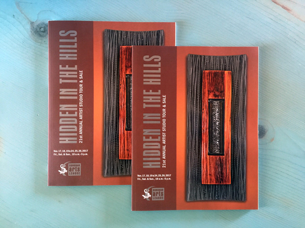 Artist directory for annual art studio tour & sale features 128 pages, soft touch cover, spot uv and metallic silver ink. Cover art by Carlos Page, printing by Courier Graphics.